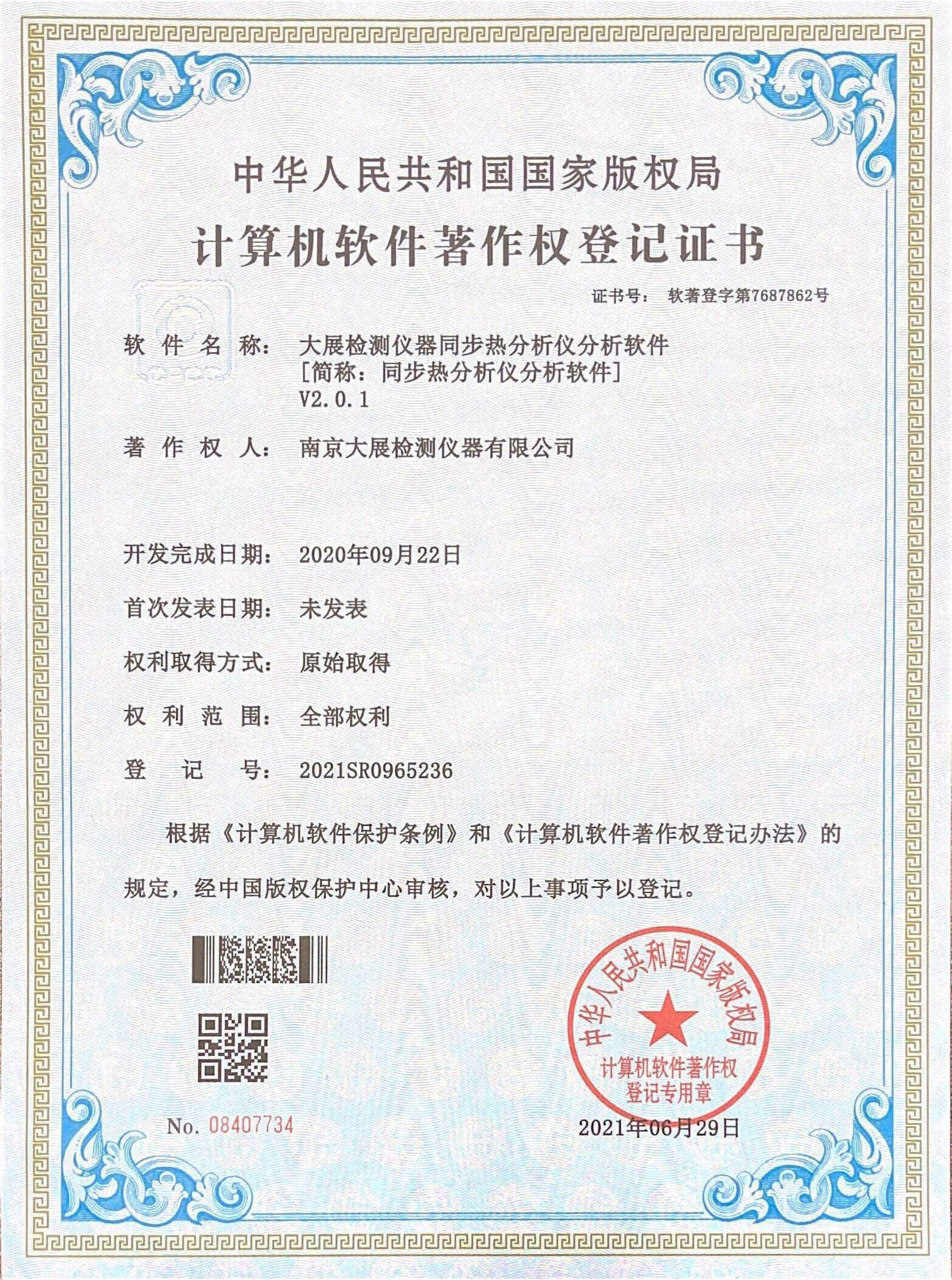 同步熱分析儀軟件著作權(quán)
