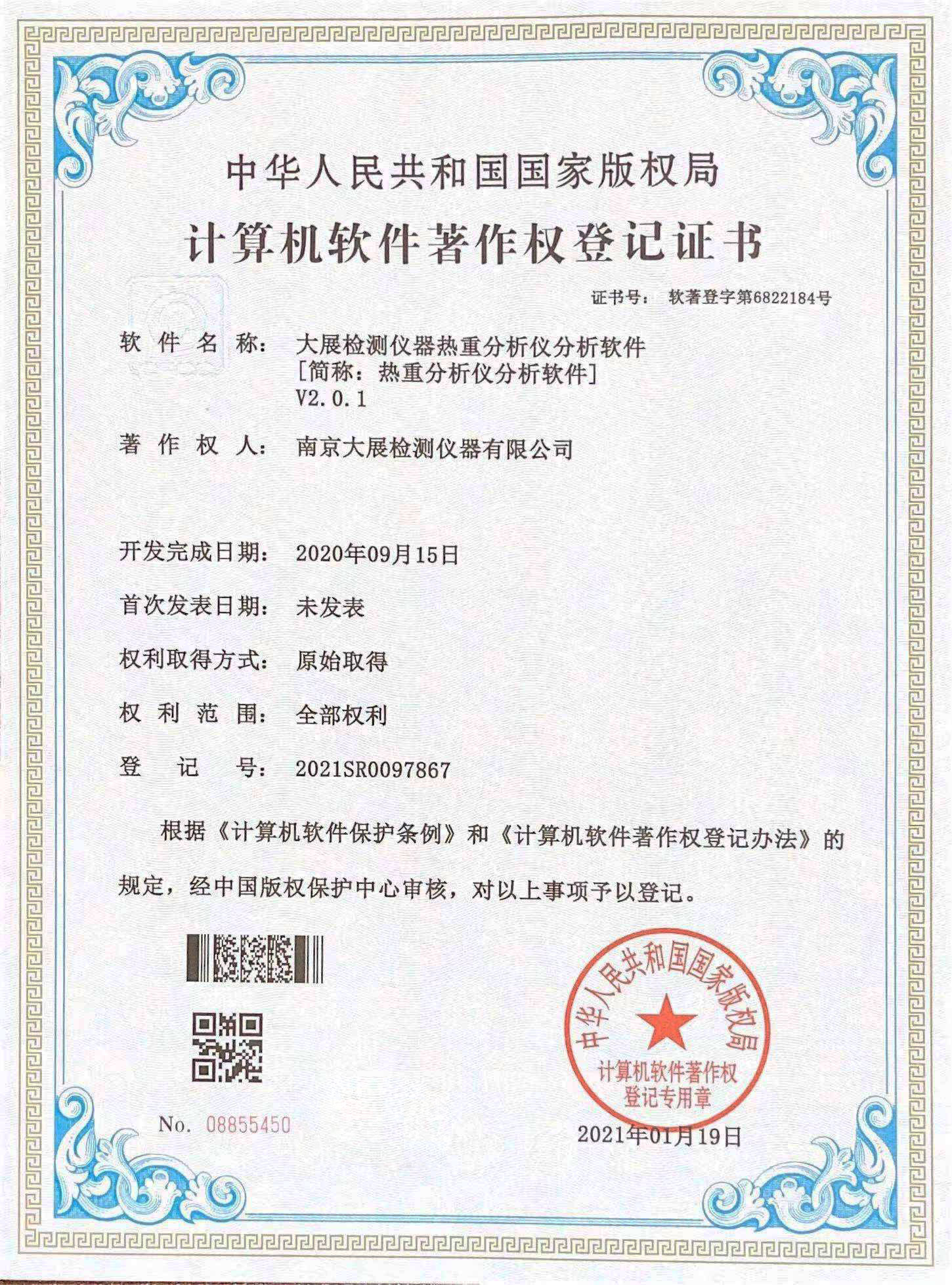 熱重分析儀軟件著作權(quán)