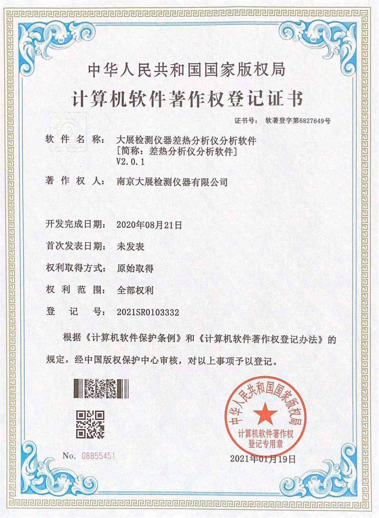 差示掃描量熱儀軟件著作權(quán)