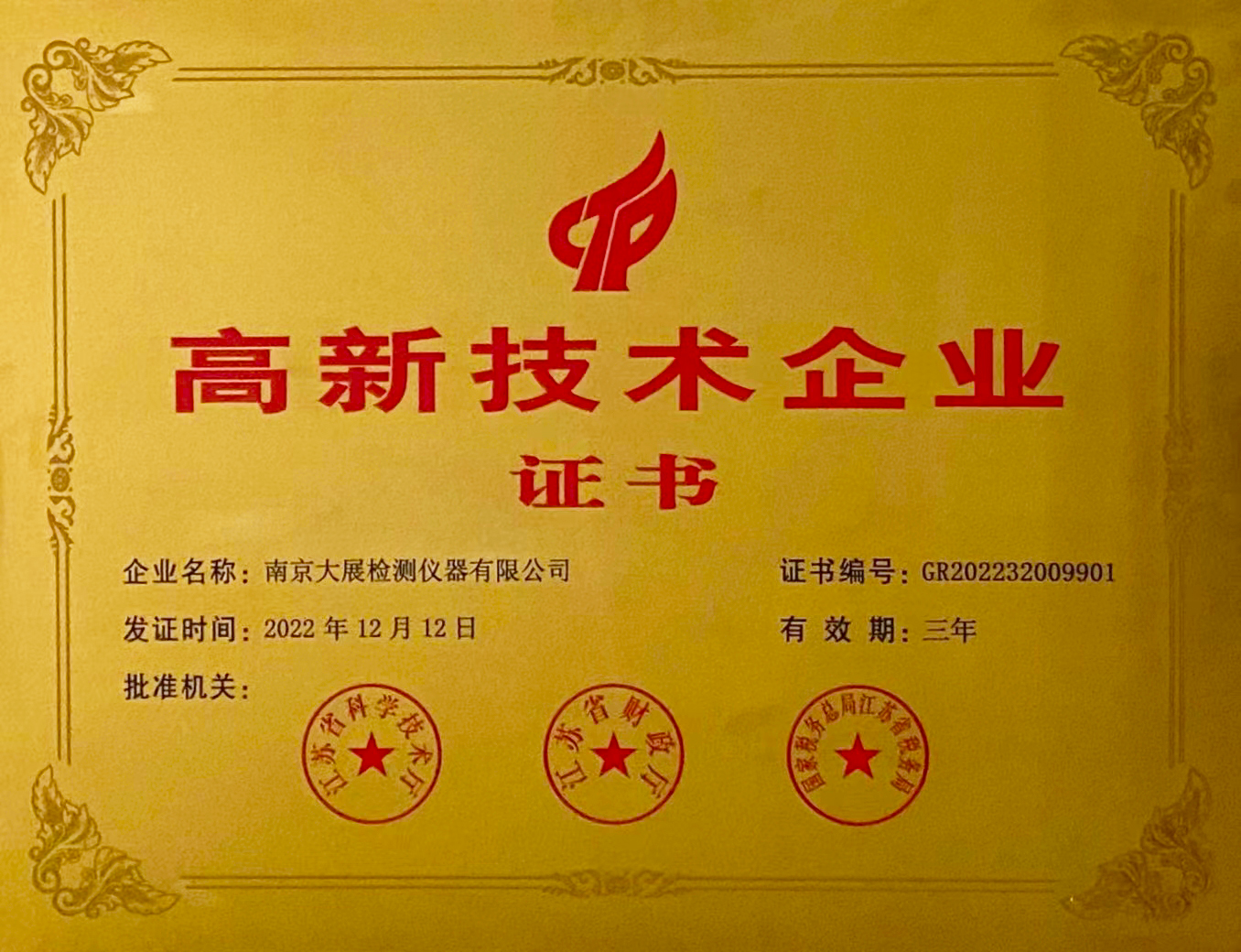 高新技術(shù)企業(yè)證書